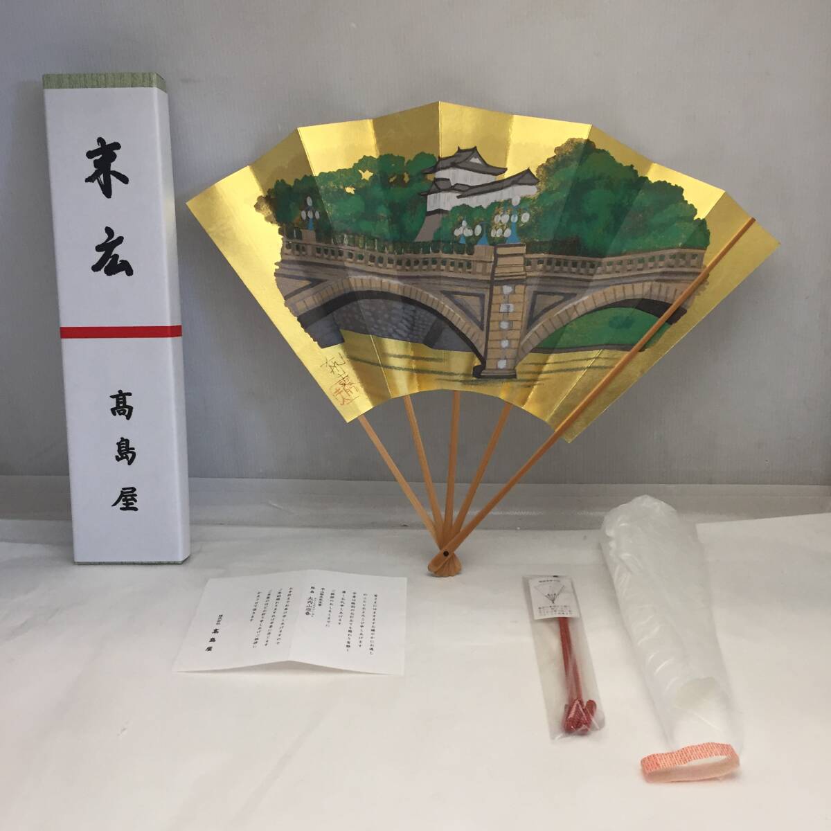 - F082703◎⑦高島屋 末広◇平山郁夫 筆 飾扇 『大内山迎春』縦約38㎝ 横約49㎝◎