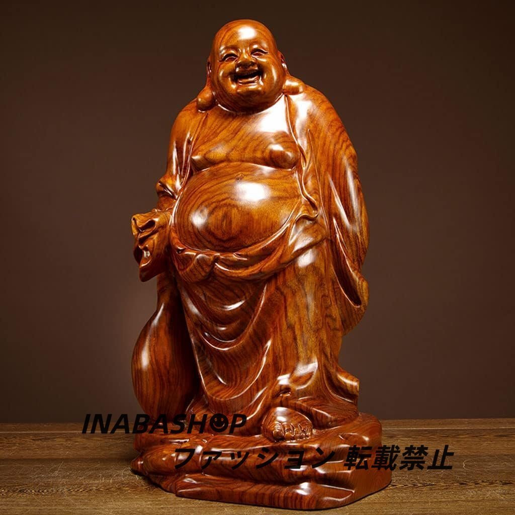 - 仏像 木彫り 七福神 布袋 様 木像 木製フィギュア 黄花梨 花梨木 高級天然カリン材 金運 お守り(Size:高さ26 cm)