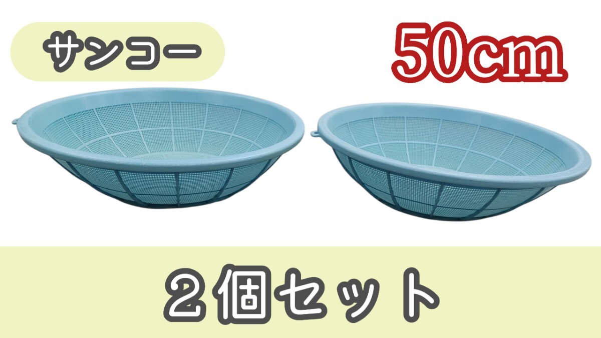 > 岩②)2個セット サンコー 浅型 丸ざる 50cm ざる 青 プラスチック キッチン用品 厨房 調理場 飲食店 カフェ ホテル 業務用 250827(N1-1棚上