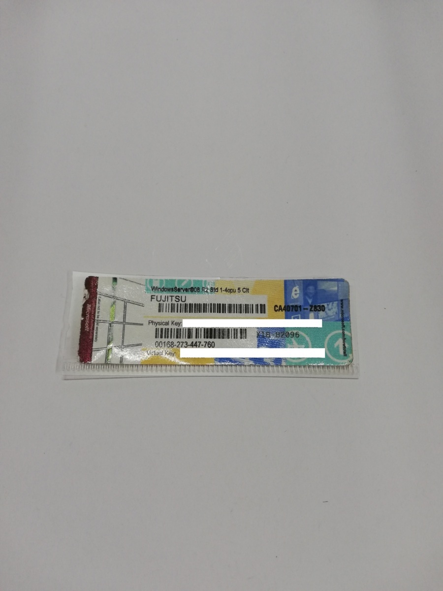 - 正規版 FUJITSU Windows Server 08 R2 Std 1-4opu 5 Clt プロダクトキーシール 1枚のみ定形郵便 追加同梱可能