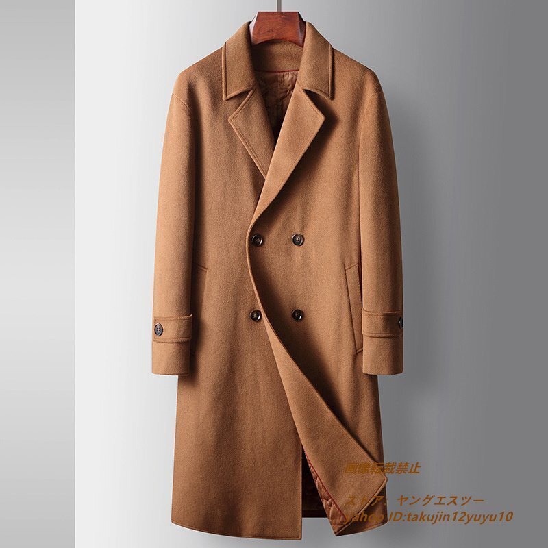 - 新品 メンズコート 紳士 ロングコート 厚手 ウール カシミヤコート ダブルボタン ビジネスコート チェスターコート アウター ブラウン 3XL