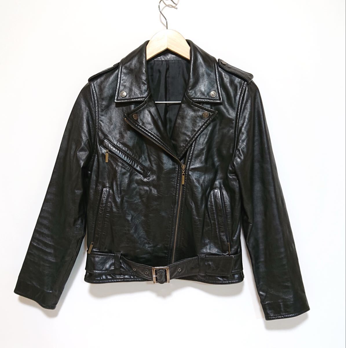 > h4125gg NOVESPAZIO(ノーベスパジオ)サイズ38(M位) レザージャケット ライダースジャケット ブラック レディース 牛革 上着 古着 used
