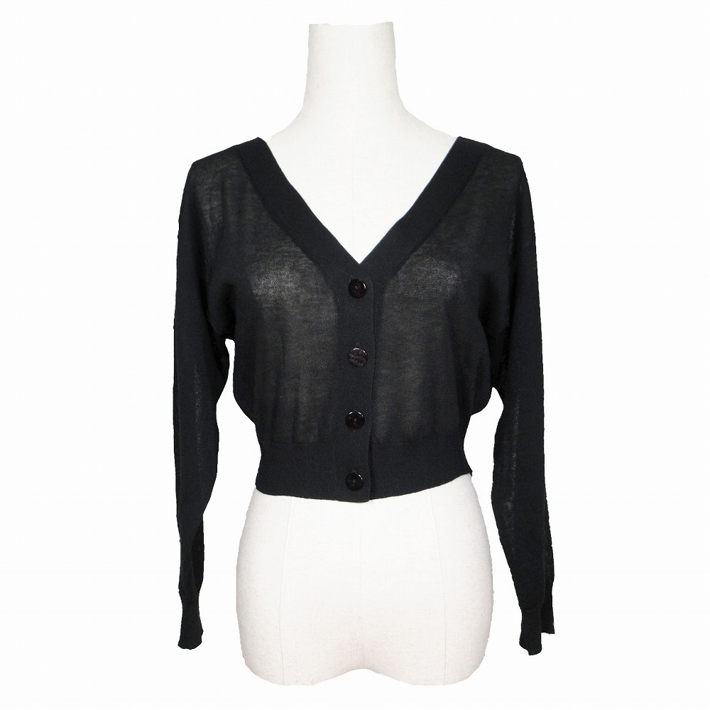 > 21SS リランドチュール Rirandture シアー ニット カーディガン ドロップショルダー Vネック 81157030 2 M 黒 ブラック ur28 【中古】