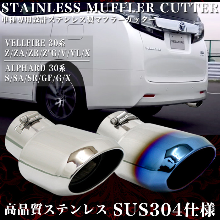 - 【シルバー】 ヴェルファイア アルファード 30 系 マフラーカッター ステンレス メッキ パーツ FJ4319-m