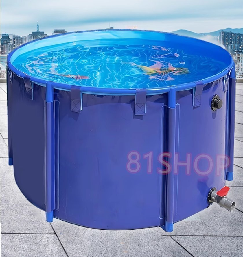 - 円形の帆布魚池厚手支柱大型防水布貯水プール養殖水槽錦鯉一時飼育池900L