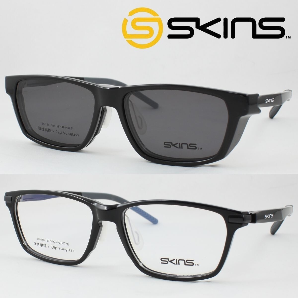 > SKINS スキンズ メガネフレーム SK-156-1 脱着式 マグネットクリップ偏光サングラス 度付き対応 近視 老眼鏡 遠近両用 スポーツ軽量 フード