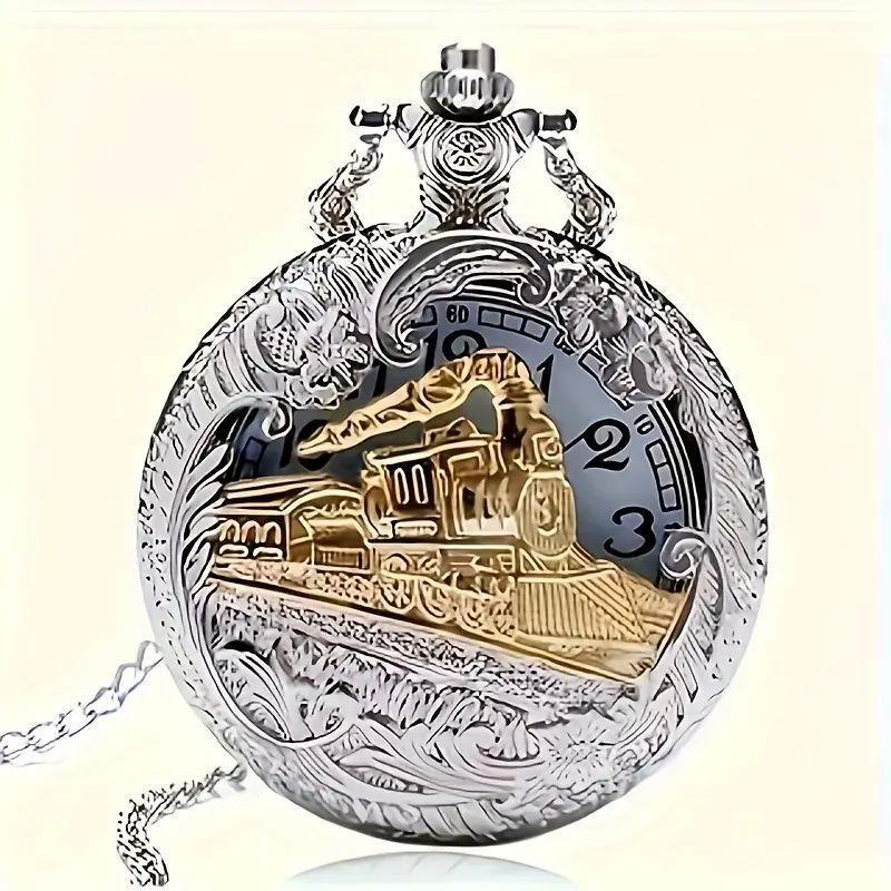 - ◎シルバーケース ホローゴールデントレイン ポケットウォッチ