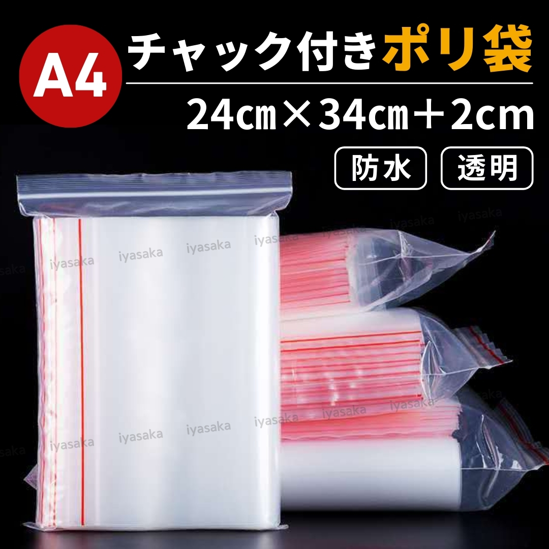 - 透明 チャック付きポリ袋 A4 100枚 防水 ジッパー袋 保存袋 梱包資材 OPP袋 大容量 仕分け袋 ビニール袋 ポリ袋 ジッパーバッグ 旅行