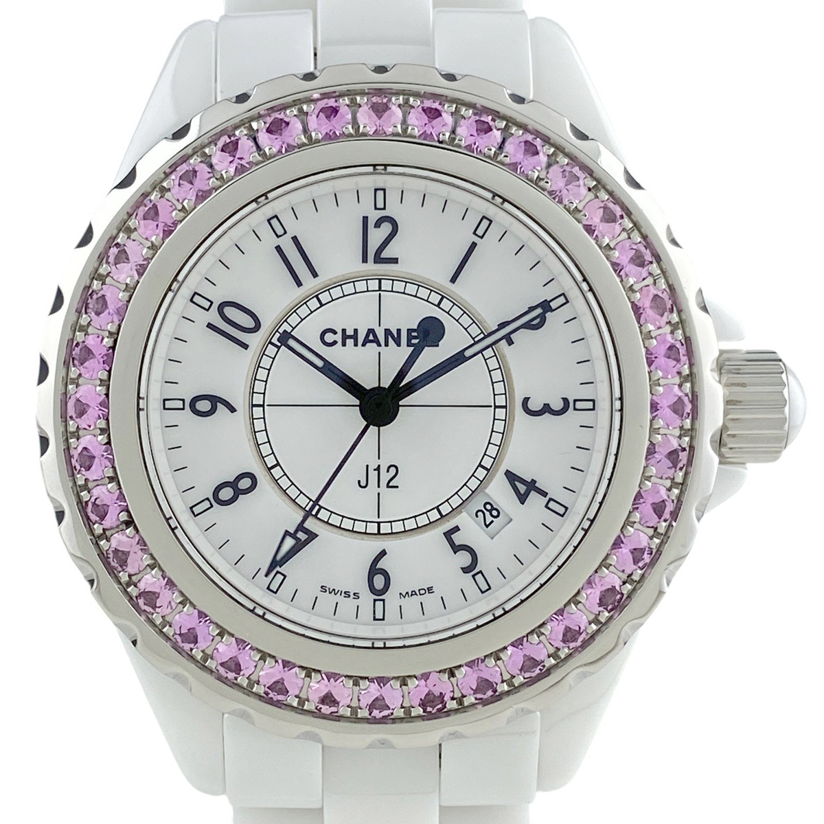 - シャネル CHANEL J12 ピンクサファイアベゼル H1181 腕時計 SS セラミック クォーツ ホワイト レディース 【中古】