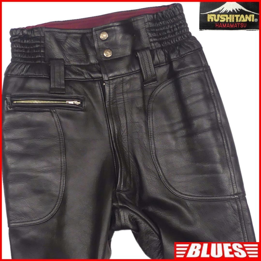 - 即決★KUSHITANI★メンズM レザーライディングパンツ クシタニ 黒 本革 ライダースパンツ 本皮 ヒザパッド 裾ジップ ツーリング レーシング