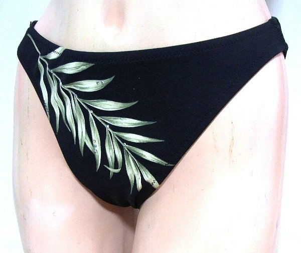 - ★☆ラインストーン入りリーフ柄 黒ビキニ水着ハイレグショーツ☆★