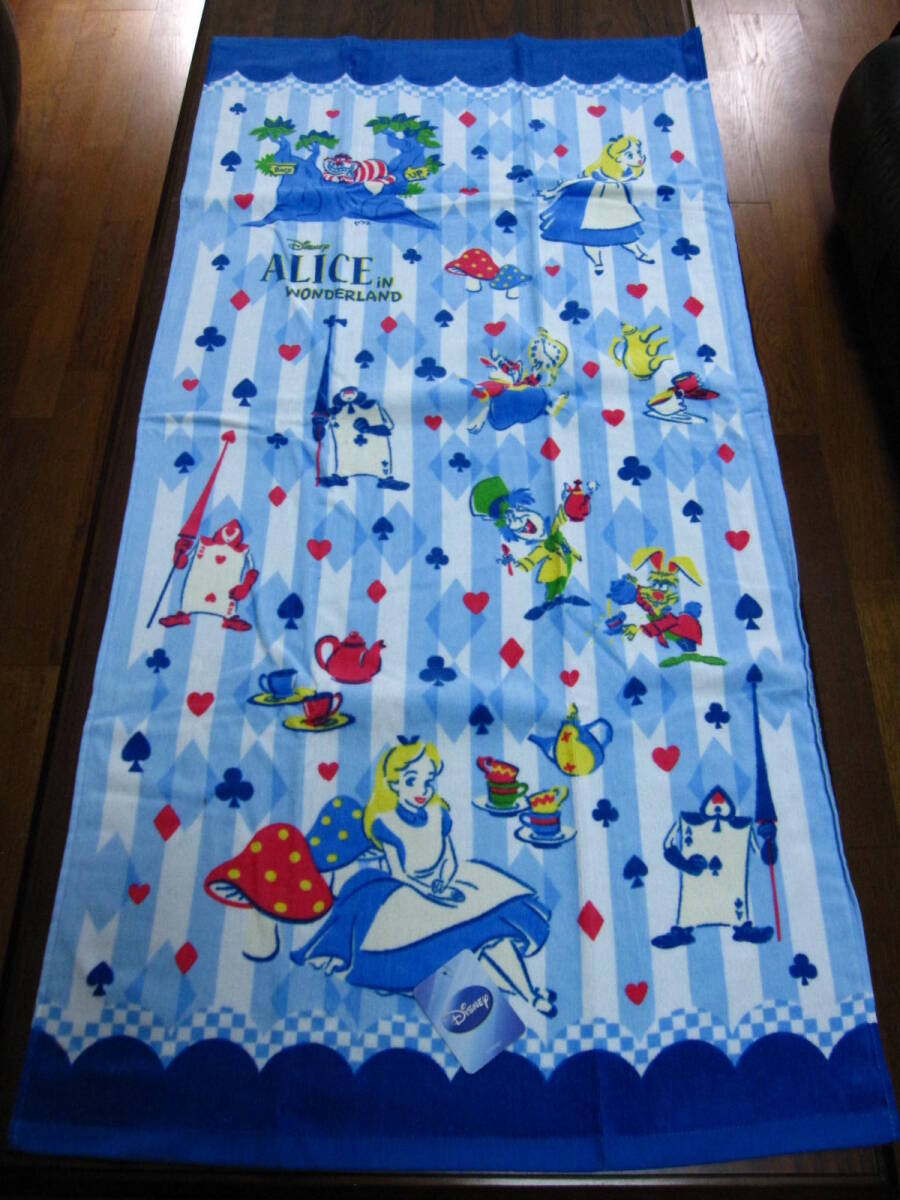 - 不思議の国のアリス バスタオル 新品 ディズニー 帽子屋 猫 絵柄 模様 ライン 格安 秋 男女 兼用 子供 綿 可愛い お洒落 祝 未使用 Disney