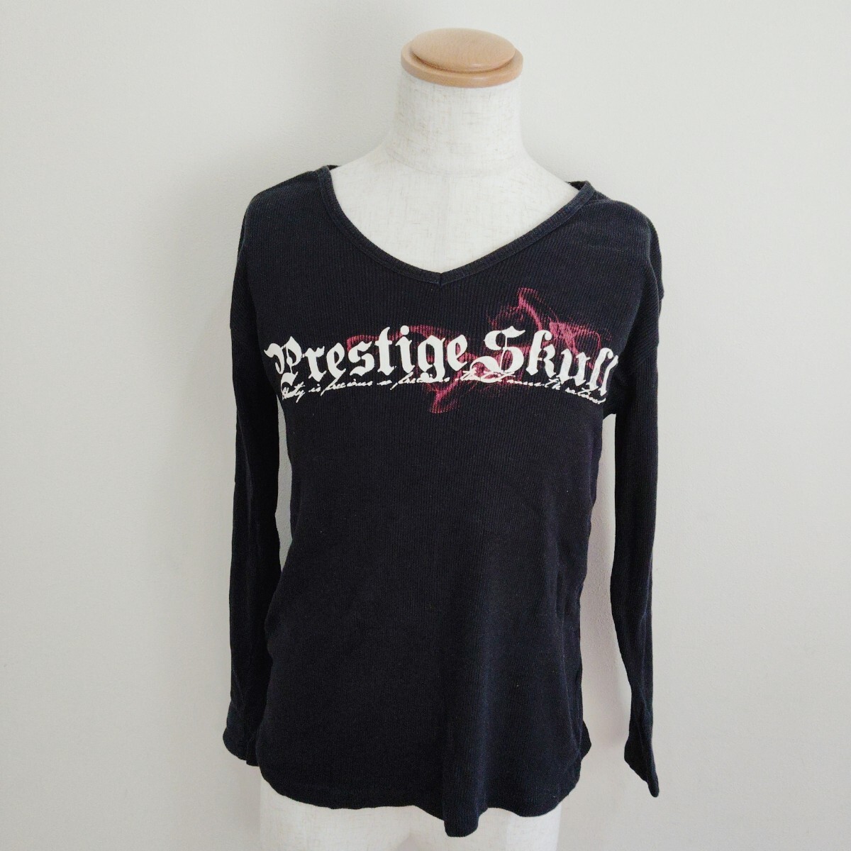- 0828/M/BeauMere メンズ 長袖カットソー リブ プリント Vネック 黒