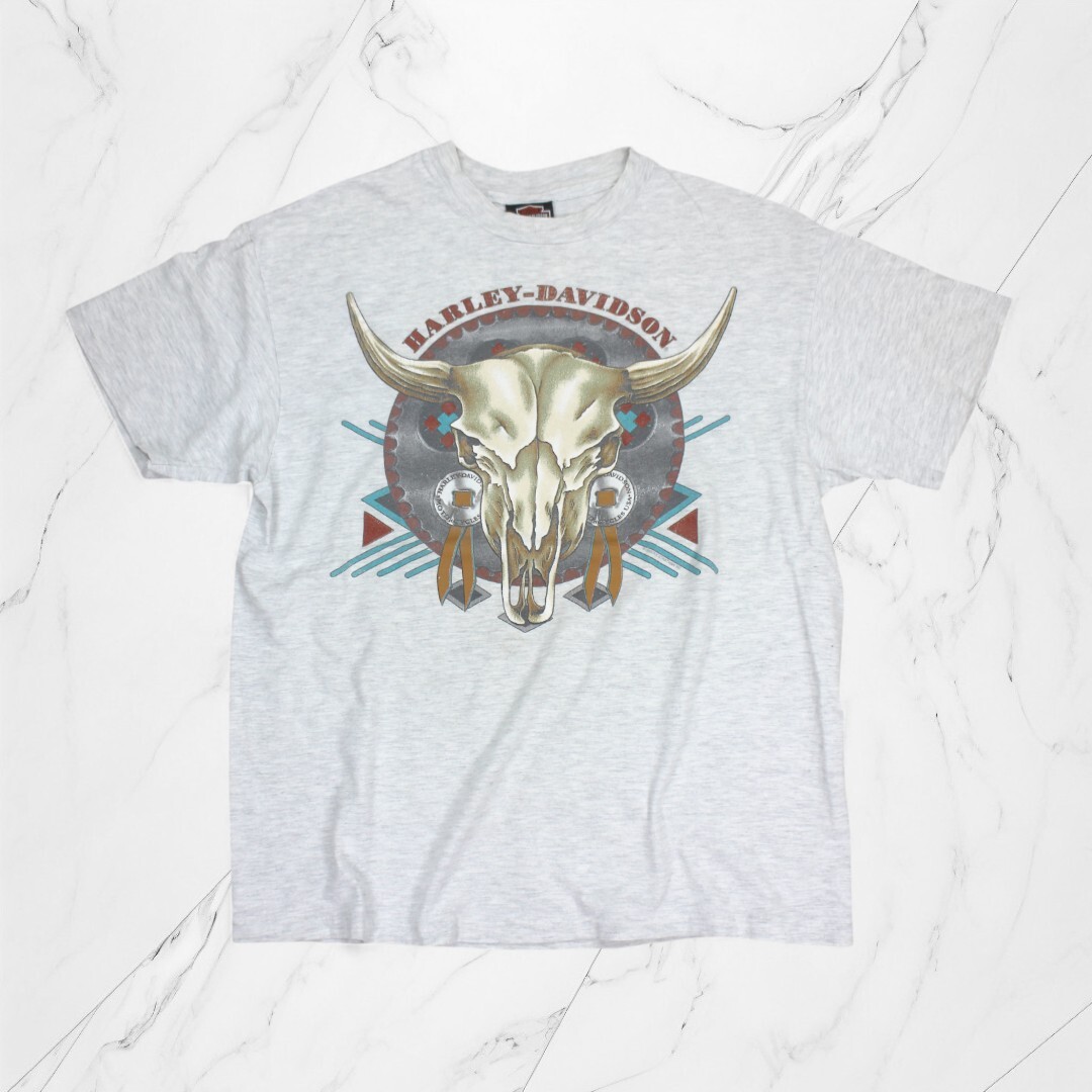 > 古着 90s USA製 Harley Davidson T-Shirts Natural ハーレーダビッドソン Tシャツ シングルステッチ 半袖 【Vintage】