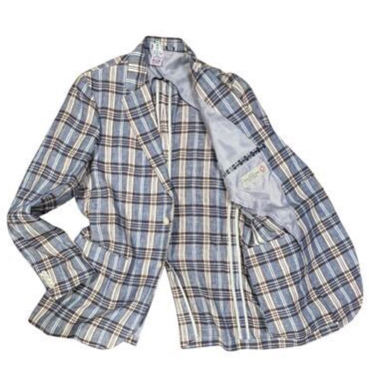 > 極美品│Kent Ave アイルランド産/ピュアアイリッシュリネン貝ボタン テーラードジャケット ブレザー/チェック96A7(L〜XL程)クリーニング済