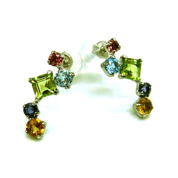 - PC1737:Pt ピンクトルマリン ブルートパーズ ペリドット アイオライト シトリン ピアス