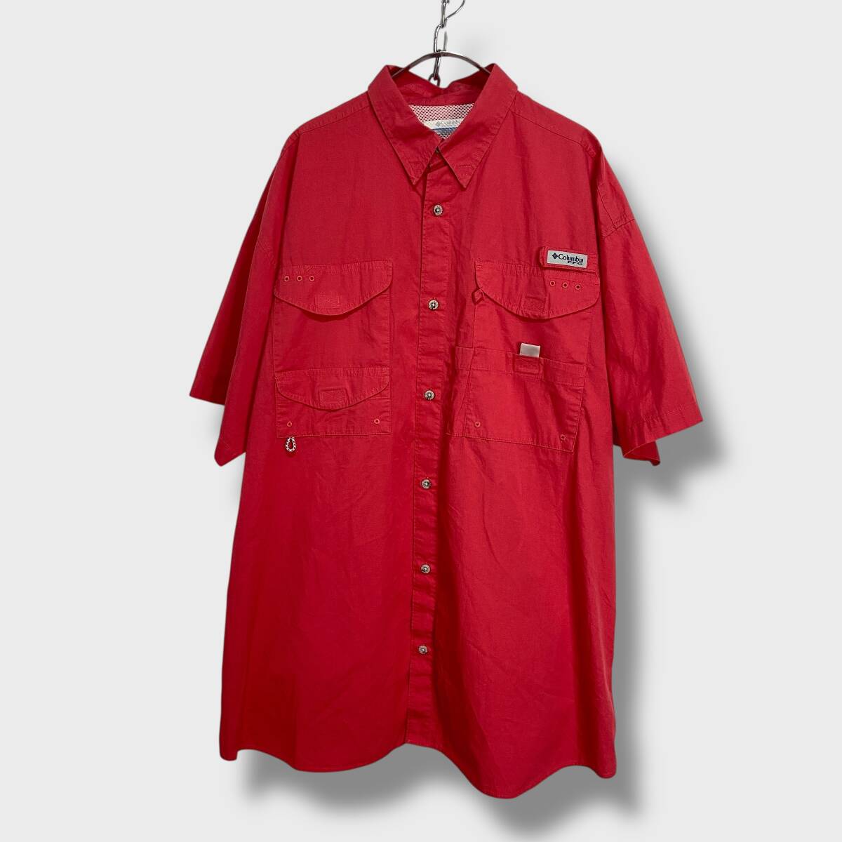- 送料無料☆Columbia☆PFGコットンフィッシングシャツ☆サファリシャツ☆レッドピンク系☆L☆H25M