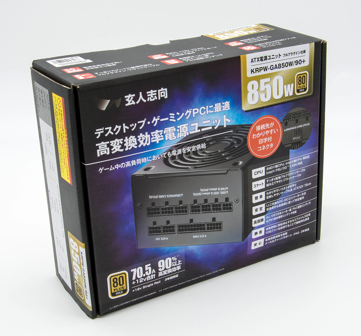 - 玄人志向 ATX電源ユニット 850W KRPW-GA850W/90 日本製コンデンサ使用 中古 動作確認済み