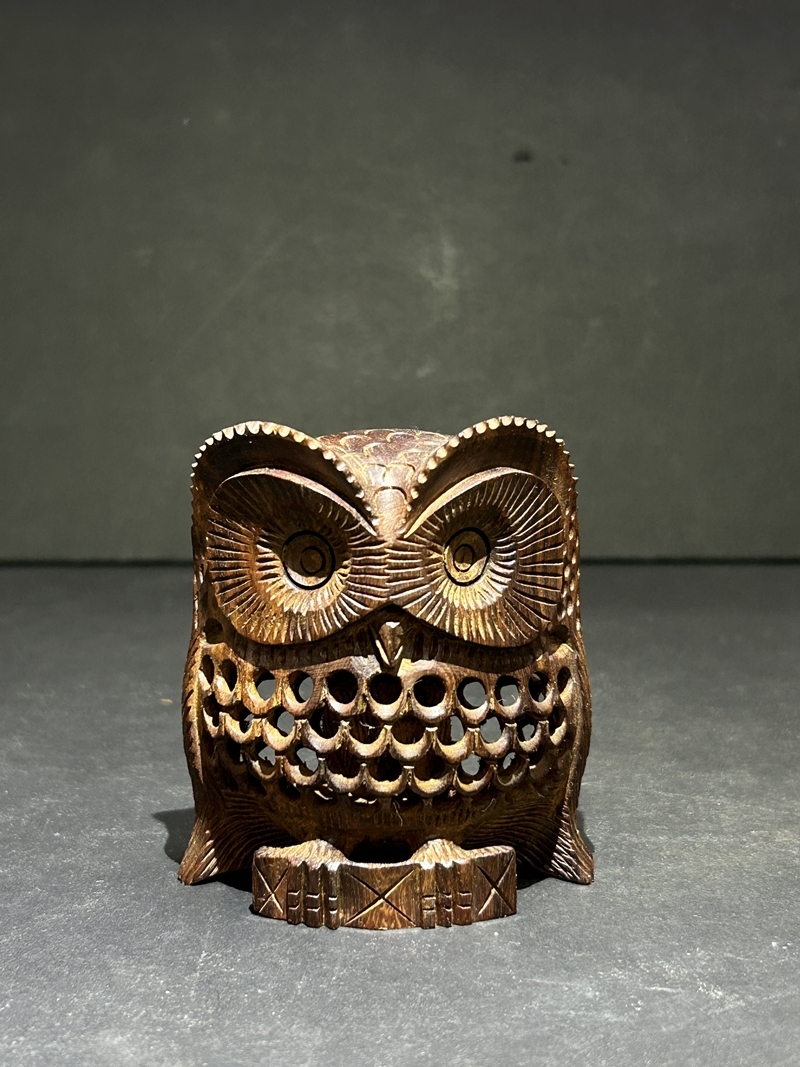 - ● コレクター必見 木製 木彫り 梟 フクロウ 透かし彫り オブジェ 置物 インテリア 飾り 雑貨 コレクション Nr769