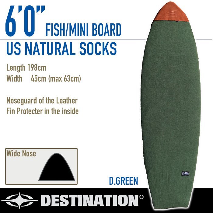 > ■DESTINATION■ニットケース 6'0 フィッシュ・オルタナ系 D.GREEN レザー製ノーズガード ボードケース/デスティネーション