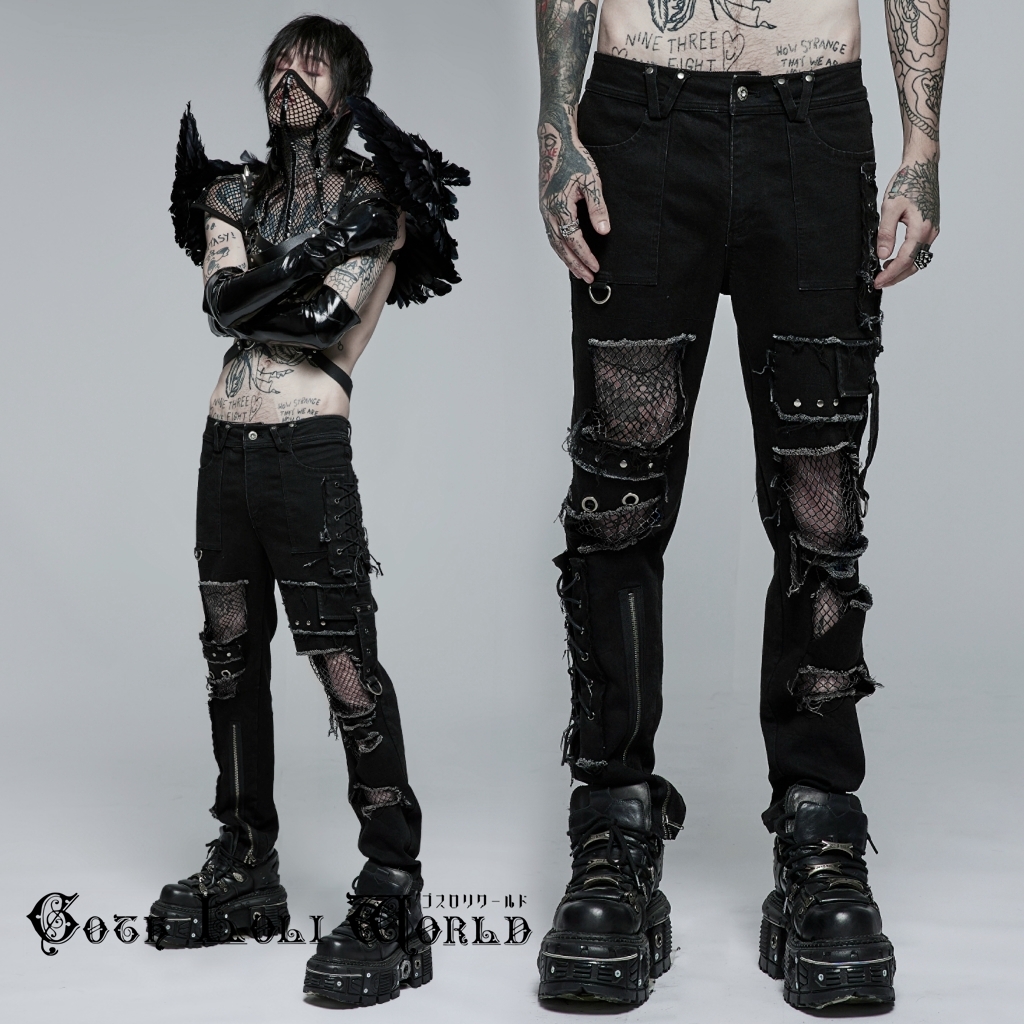 - WK-503XCM-BK-S ハードダメージパンクメッシュ デニムパンツ ゴスロリワールド ゴシック パンク ロック ロリィタ ビジュアル系 V系
