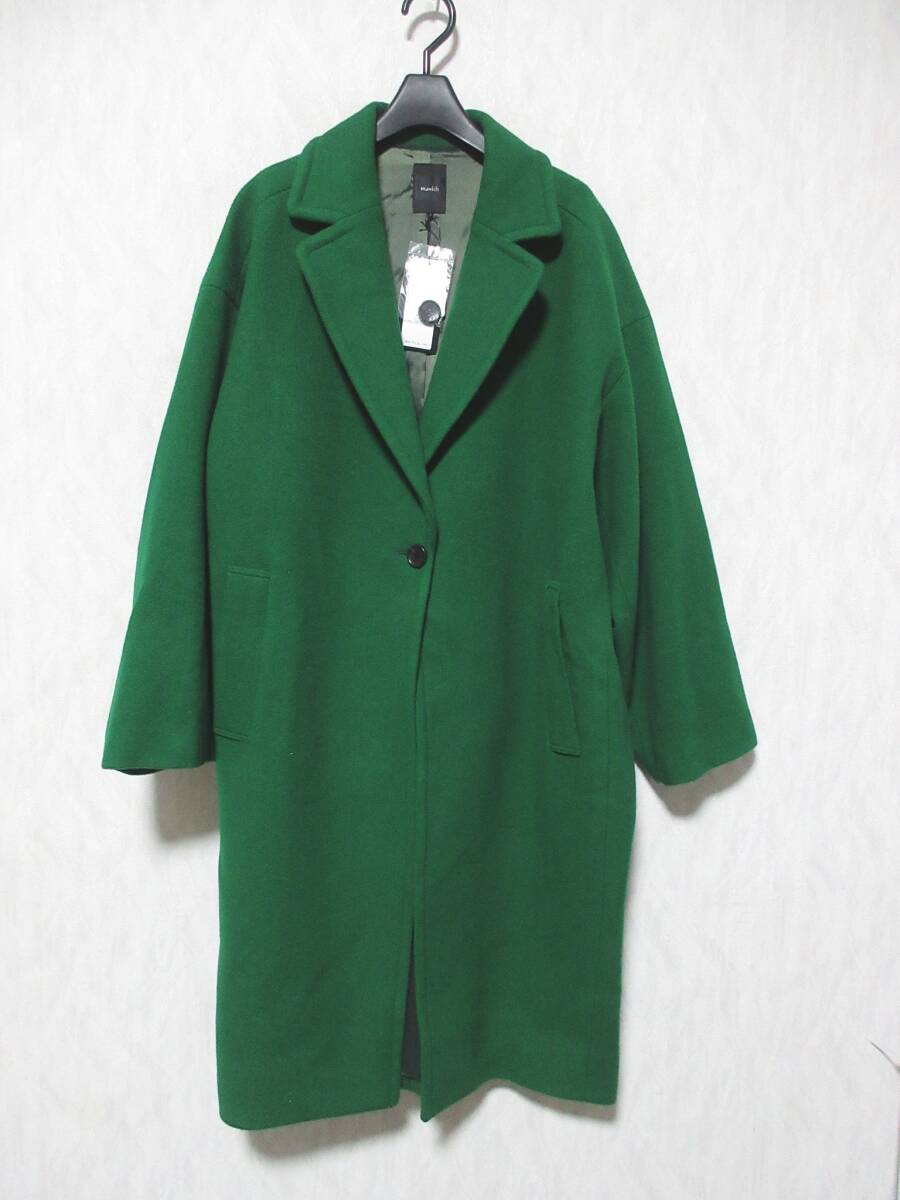 > 未使用 Munich ミューニック ウール100% ワイドチェスターコート MN192C26 レディース S グリーン kn2575