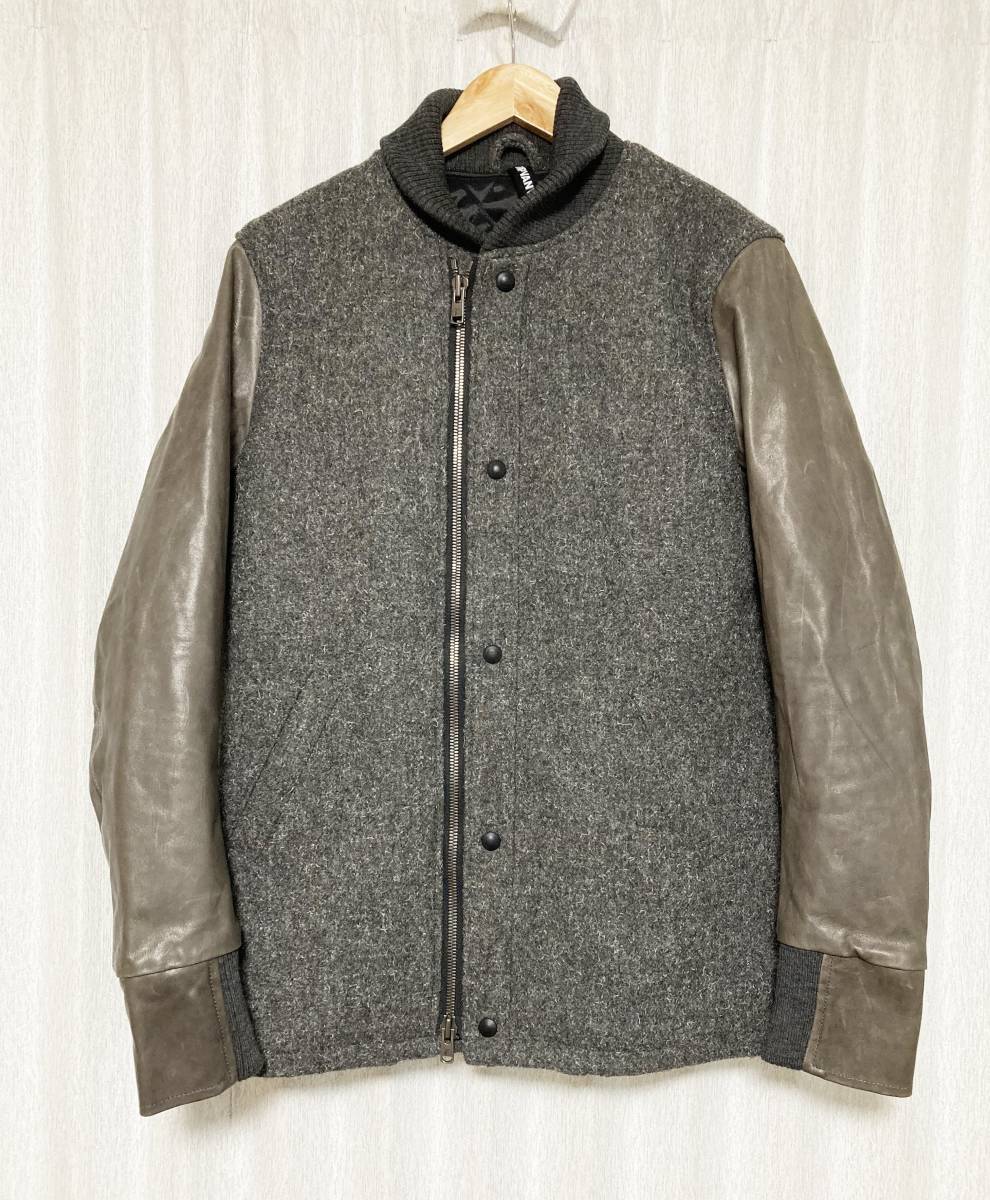 - [ripvanwinkle] 17AW 定価96,800 STADIUM COACH JACKET ホースハイド切替 袖レザースタジャン バーシティジャケット 5 グレー 馬革 RAW-047