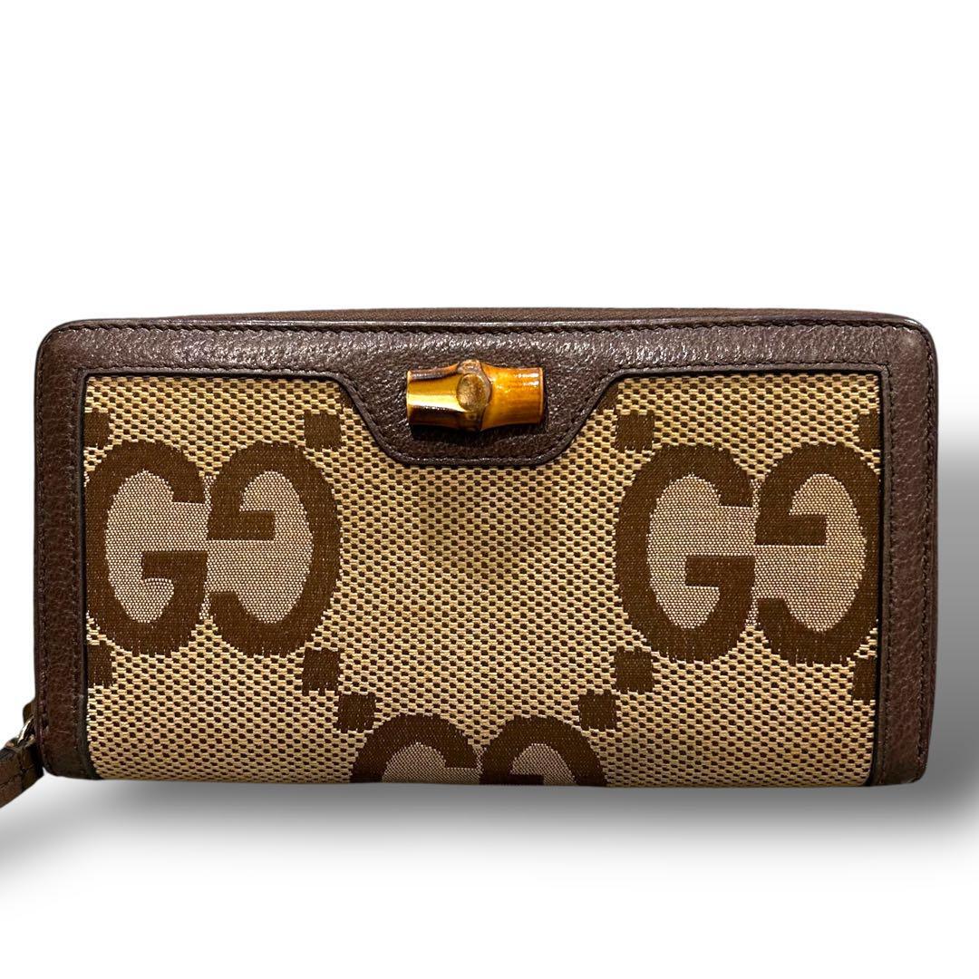 > 未使用 GUCCI グッチ ジャンボGG ダイアナ 長財布 ジッピーウォレット キャンバス レザー