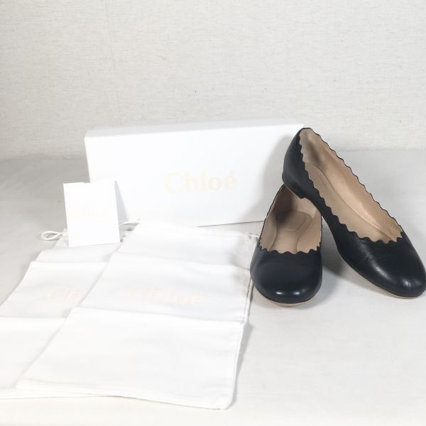 > 【状態良好】Chloe クロエ フラットシューズ パンプス ブラック系 黒 バレリーナ size37 靴
