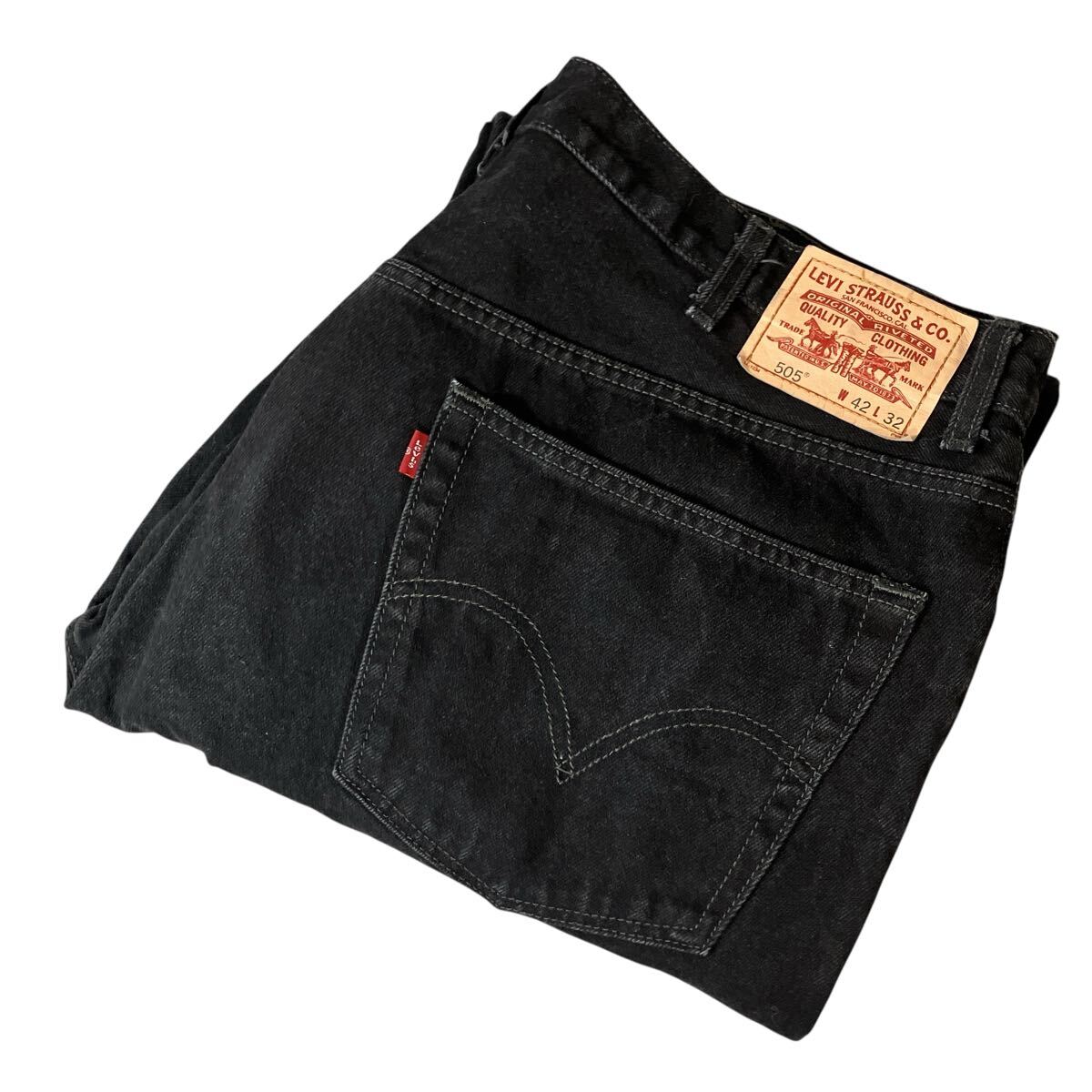 - Levi's リーバイス '505' 00s ブラックデニム 色褪せフェード デニム 黒ブラック ジーンズ デニムパンツ 古着 ジーパン 極太 W42 L32
