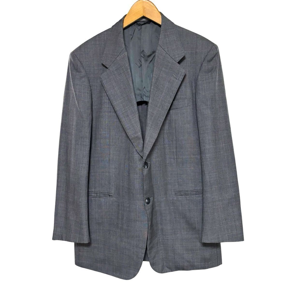 > ※J dunhill ダンヒル ウールテーラードジャケット グレー チェック 毛100% 2B 背抜き サイズAB6 メンズ L相当