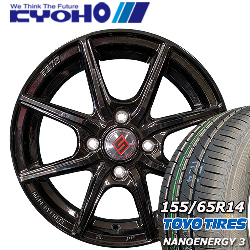 - 【(2025年製)トーヨー NANOENERGY 3 155/65R14】【KYOHO ザイン EK ブラック 14×4.5J IN45 4H PCD100】新品 タイヤ&ホイール
