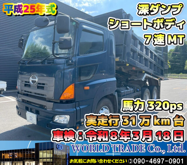 - 【広島発】下取り・ローン受付可 日野 グランドプロフィア 深ダンプ 平成25年式 7速MT ショートボディ 馬力320ps 車検付き