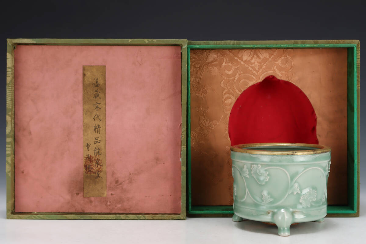 - 旧 宋代 竜泉窯 粉青釉 三足香炉 唐磁 古陶磁器 陶芸 中国古美術 古賞物 古置物 唐物 S78