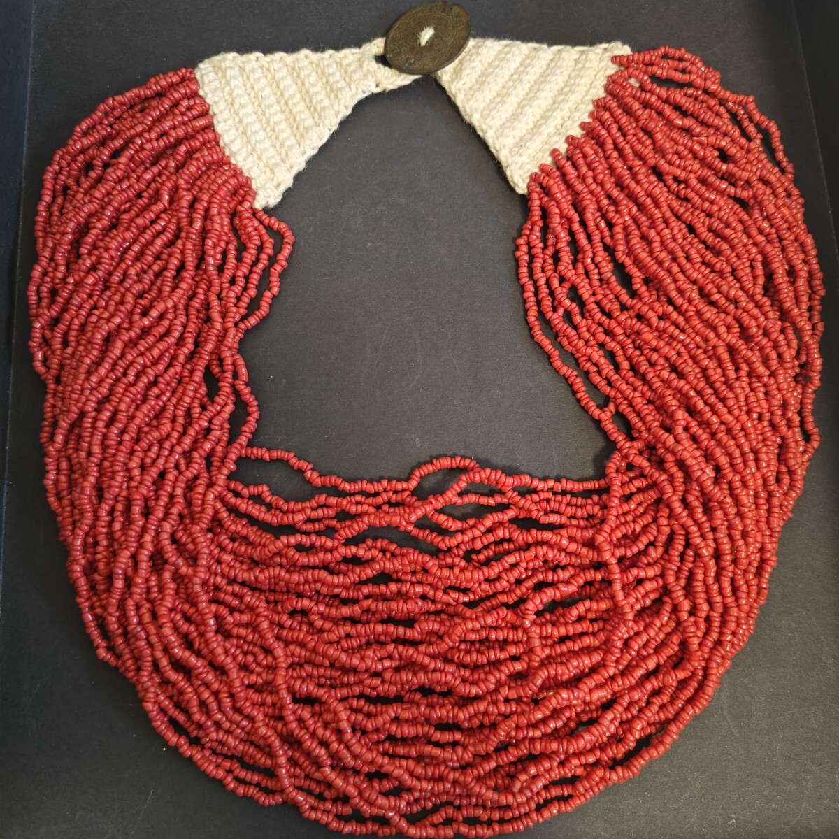 - アンティーク 40列 赤珊瑚 ナガランド珊瑚ネックレス、1910年頃、天然珊瑚、インド、コインクラスプ、真のヴィンテージ、コテージ レア