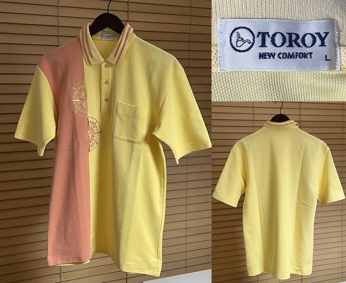 > 【激安1点のみ 国内正規品】日本製 TOROY NEW COMFORT トロイ コットン ポリエステル 胸ポケット 半袖 ポロシャツ L イエロー×ピンク系