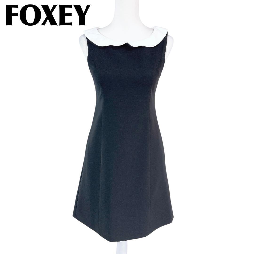 - 【美品】フォクシー ニューヨーク ノースリーブワンピース 白襟 38 無地