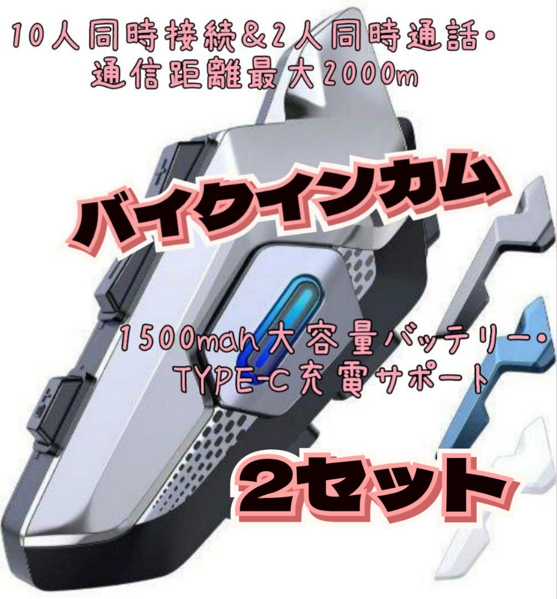> 【2セット】バイク インカム 10人同時接続 35H長時間連続使用 Bluetooth5.3 2000m通信距離 IP67防水 日本語説明書