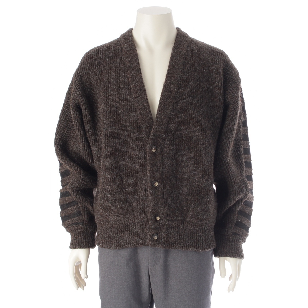 - イッセイミヤケ メン 80s 筆タグ ウール×ナイロン 切替デザイン 変形 カーディガン ブラウン×ブラック F【中古】