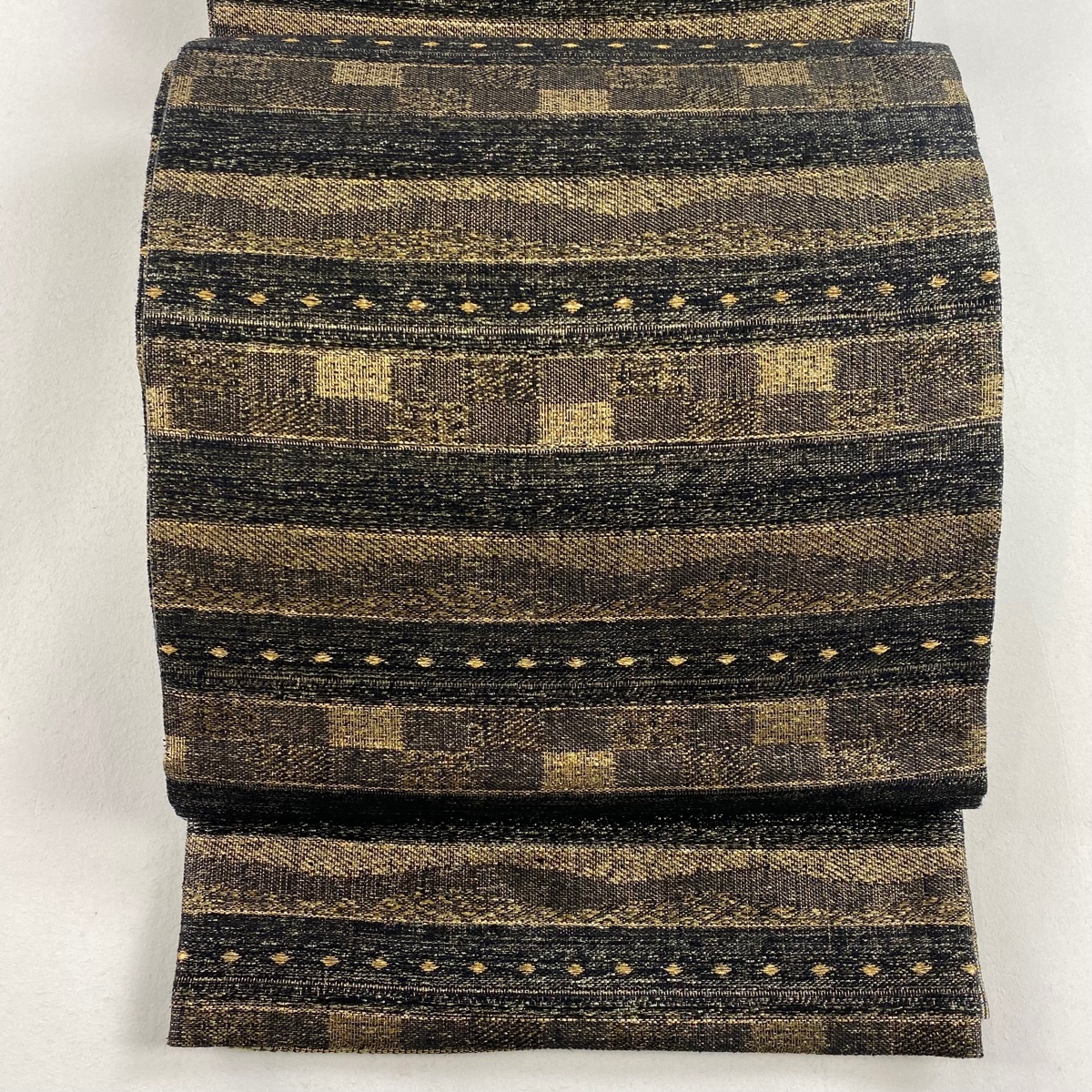 - 袋帯 美品 名品 やまと 段縞 幾何学模様 金糸 箔 金茶 全通 正絹 【中古】