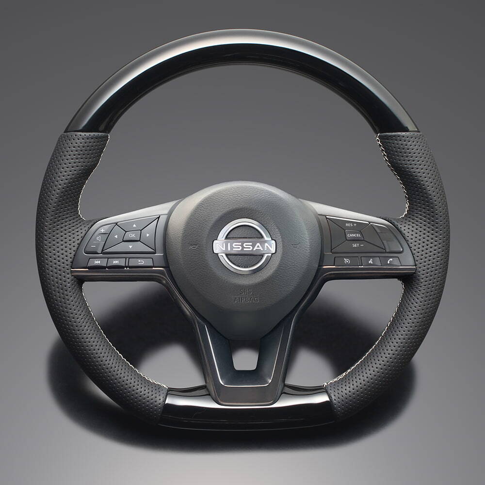 > FEGGARI ノート E12 ステアリング ピアノブラック x PVCレザー(ダークグレー) x シルバー ユーロステッチ / LS251 フェガーリ