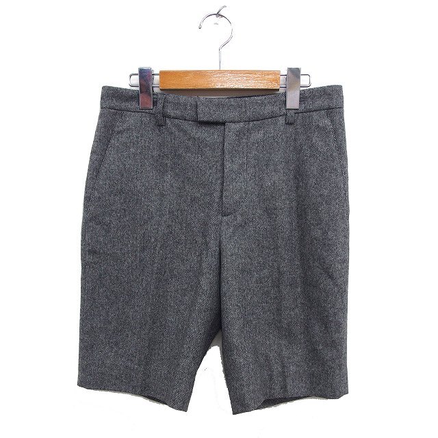 > アニエスベー agnes b. ヘリンボーン柄 ハーフパンツ ウール センタープレス ジップフライ 36 グレー /NT15 レディース