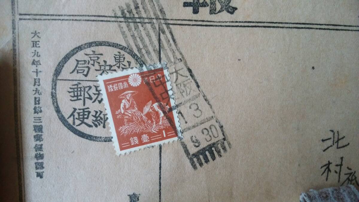 - 第三種郵便エンタイア 稲刈り1銭 昭和13年9月30日 「大阪中央」局 ローラー印・鮮明 封筒にシミあります Ⅵ1函