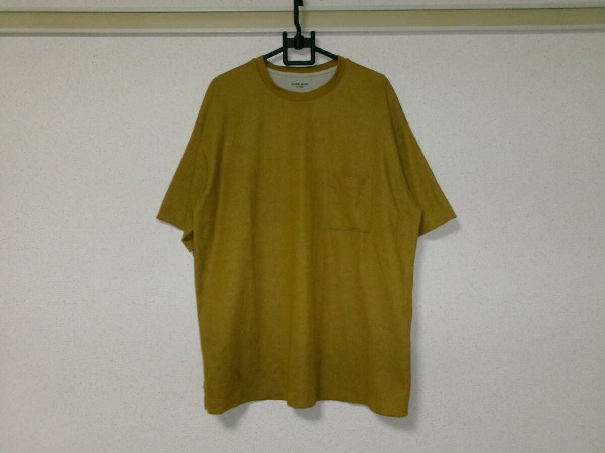 - GLOBAL WORKグローバルワーク☆アダストリア☆モスグリーンくすみ黄緑カーキイエローの半袖Tシャツカットソー☆ゆったり大きめXLサイズ美品