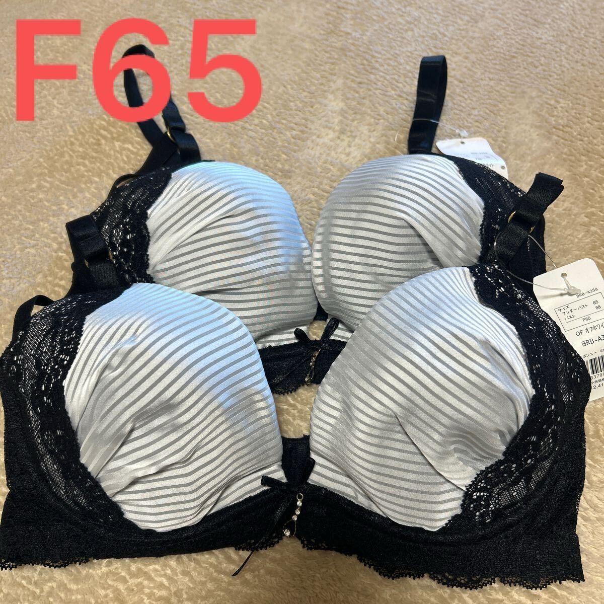> 新品 absorle アブソール ブラジャー F65 2枚セット ボーダー レース ブラ
