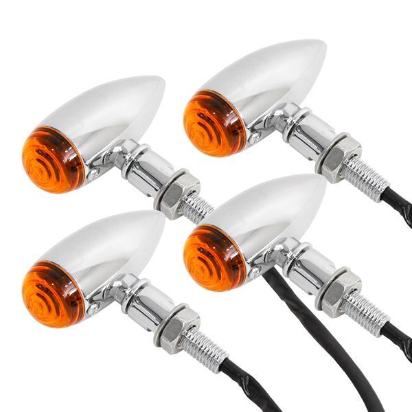 - ю ヤマハ SR400/SRX400/TW200,225/フェザー ブレット ウインカー 4個 セット クロームメッキ 砲弾 1台分 10mm ハロゲン 社外品 新品