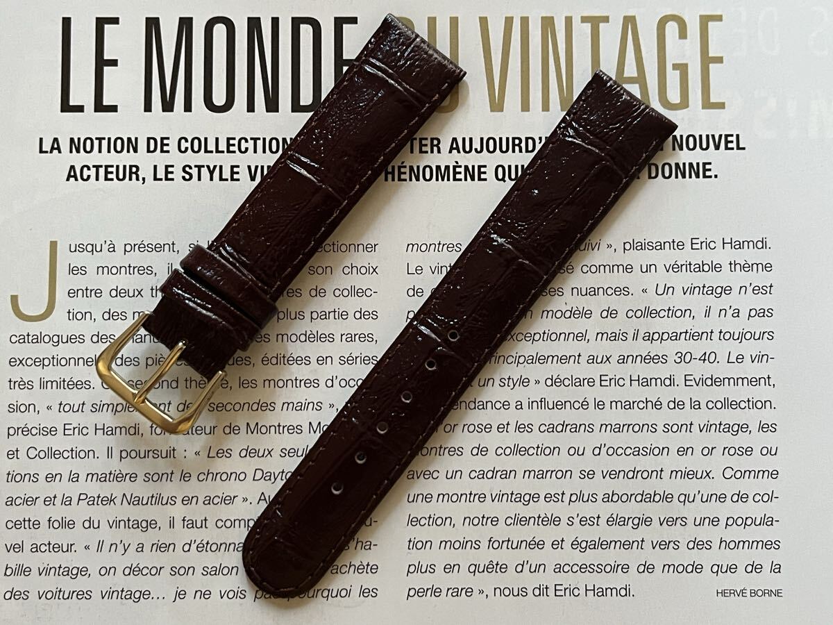 - 18mmユーロストックfromフランス レザー時計ベルト ブラウン クロコ型押し メーカー在庫未使用デッドストック品 ヴィンテージ B18-6