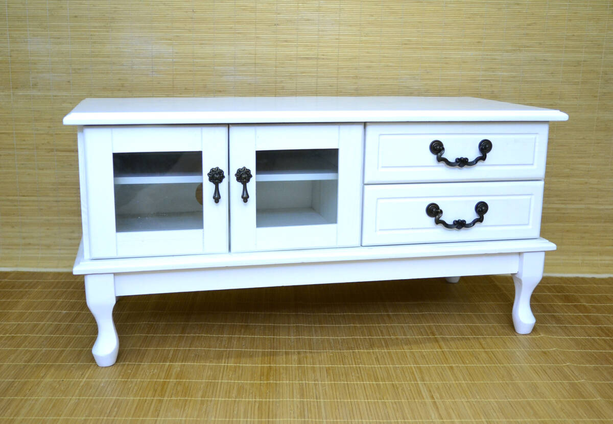 > ホワイト テレビ台 飾り棚 アンティーク調 猫脚 可愛い おしゃれ 姫系 AVボード 収納家具 中古良品