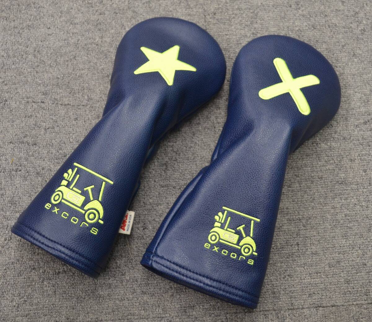- 人気です! AM&E excors エクスコアーズ フェアウェイ用 ヘッド カバー 2本セット ネイビー/イエロー