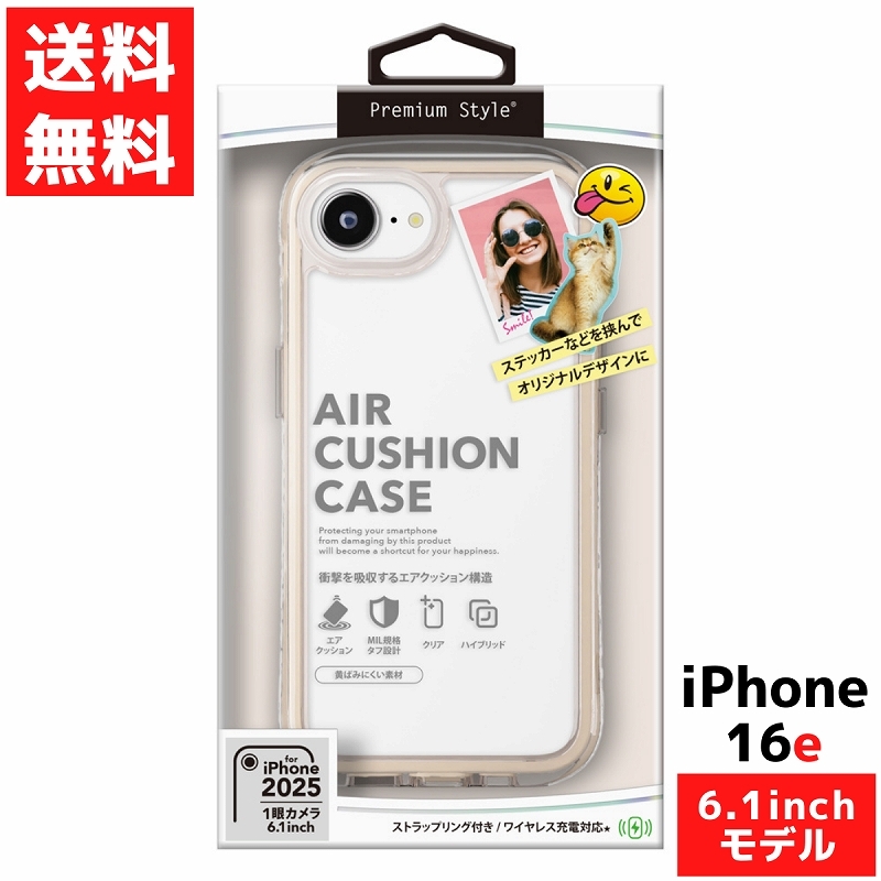 - iPhone 16e 用 エアクッションケース モカ クリア ストラップホール付き アイフォン ケース TPU素材